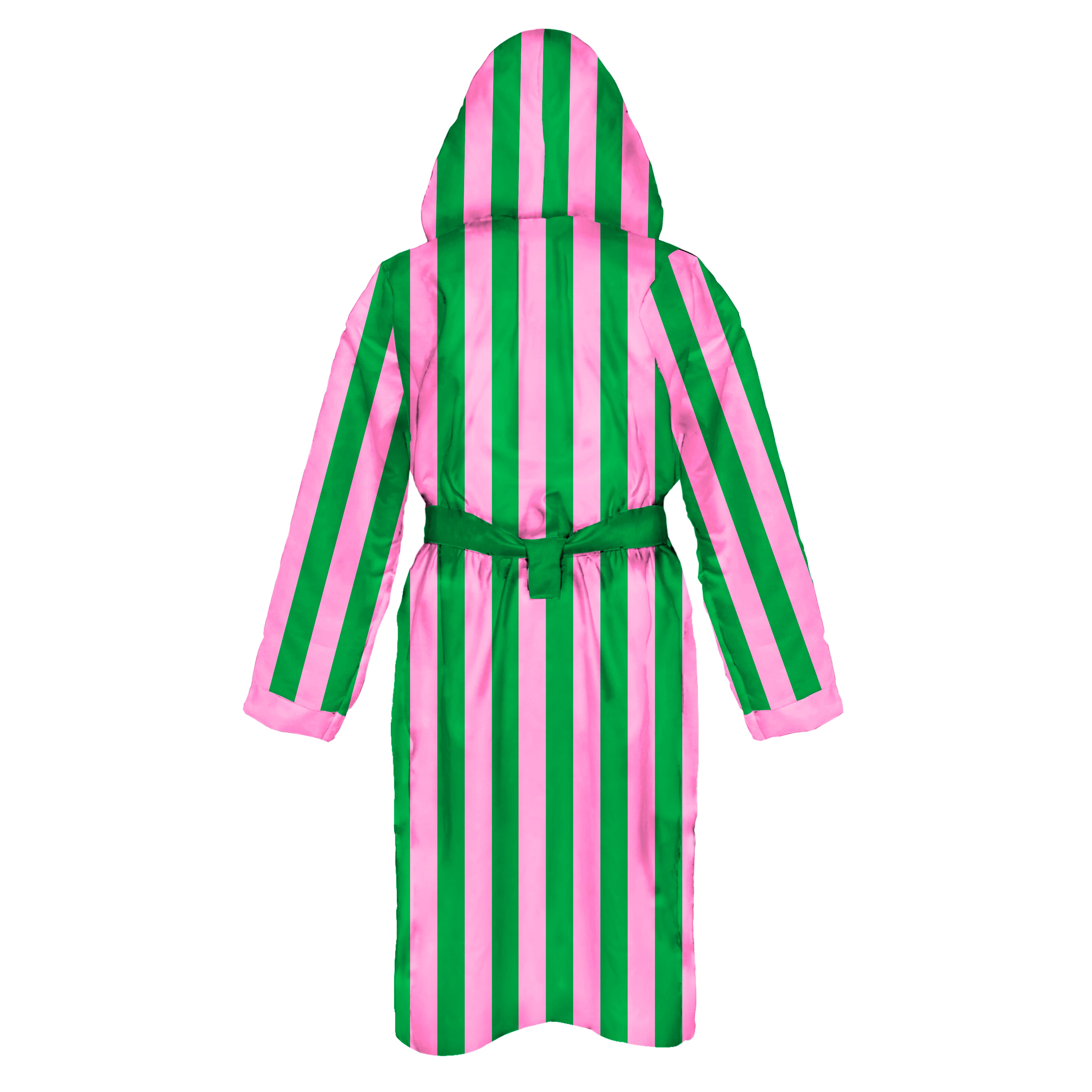 Bata de baño realizada en suave microfibra. Firmada por BONESWIMMER, con estampado atemporal a rayas en rosa claro y verde. Envolvente y práctica, una prenda diseñada para ofrecer la máxima comodidad y un secado rápido. Ideal tanto para el gimnasio como para la piscina.