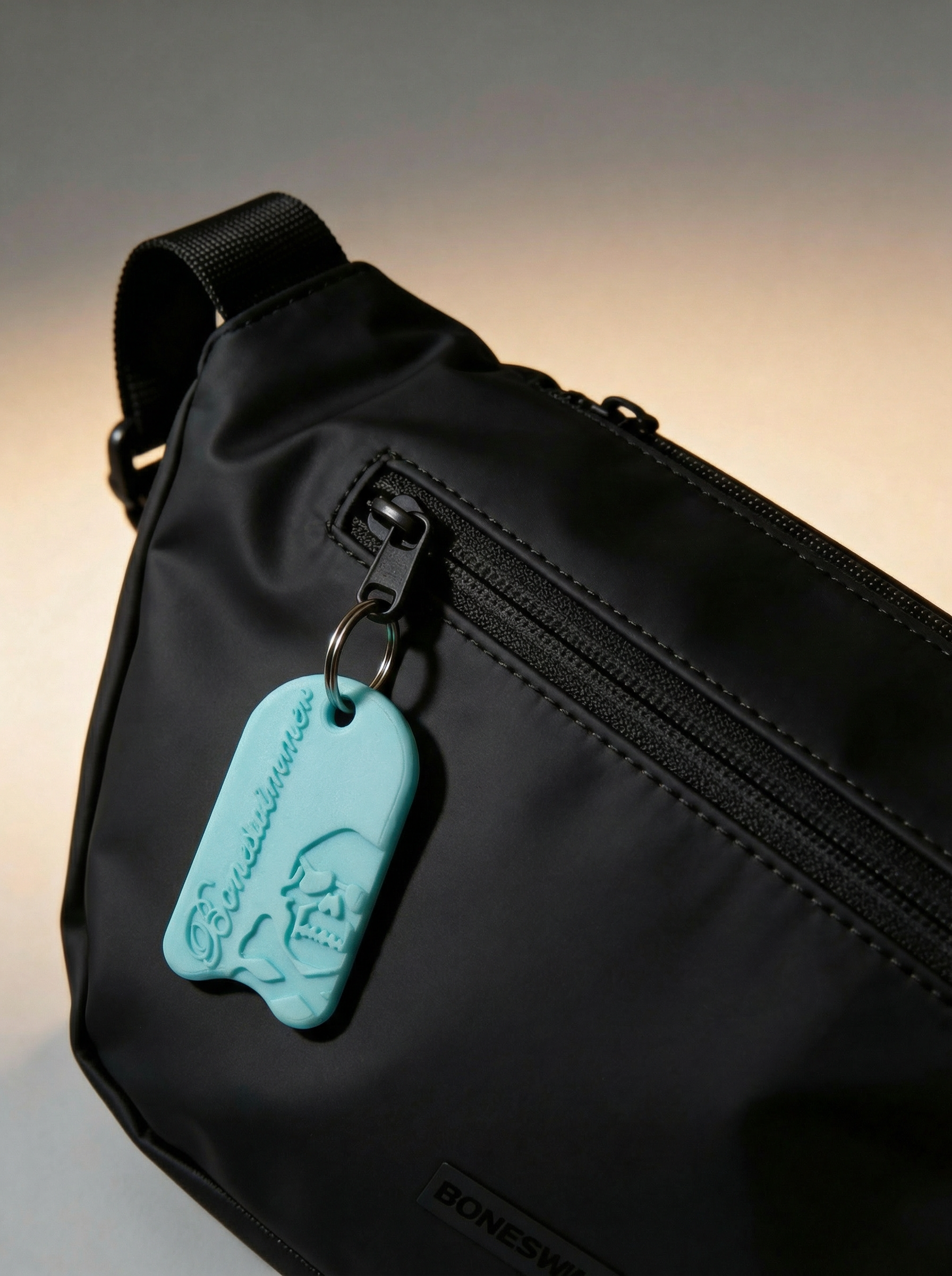 Fabricado en 3D con logo BONESWIMMER y relieve gráfico, para un signo discreto pero claro.