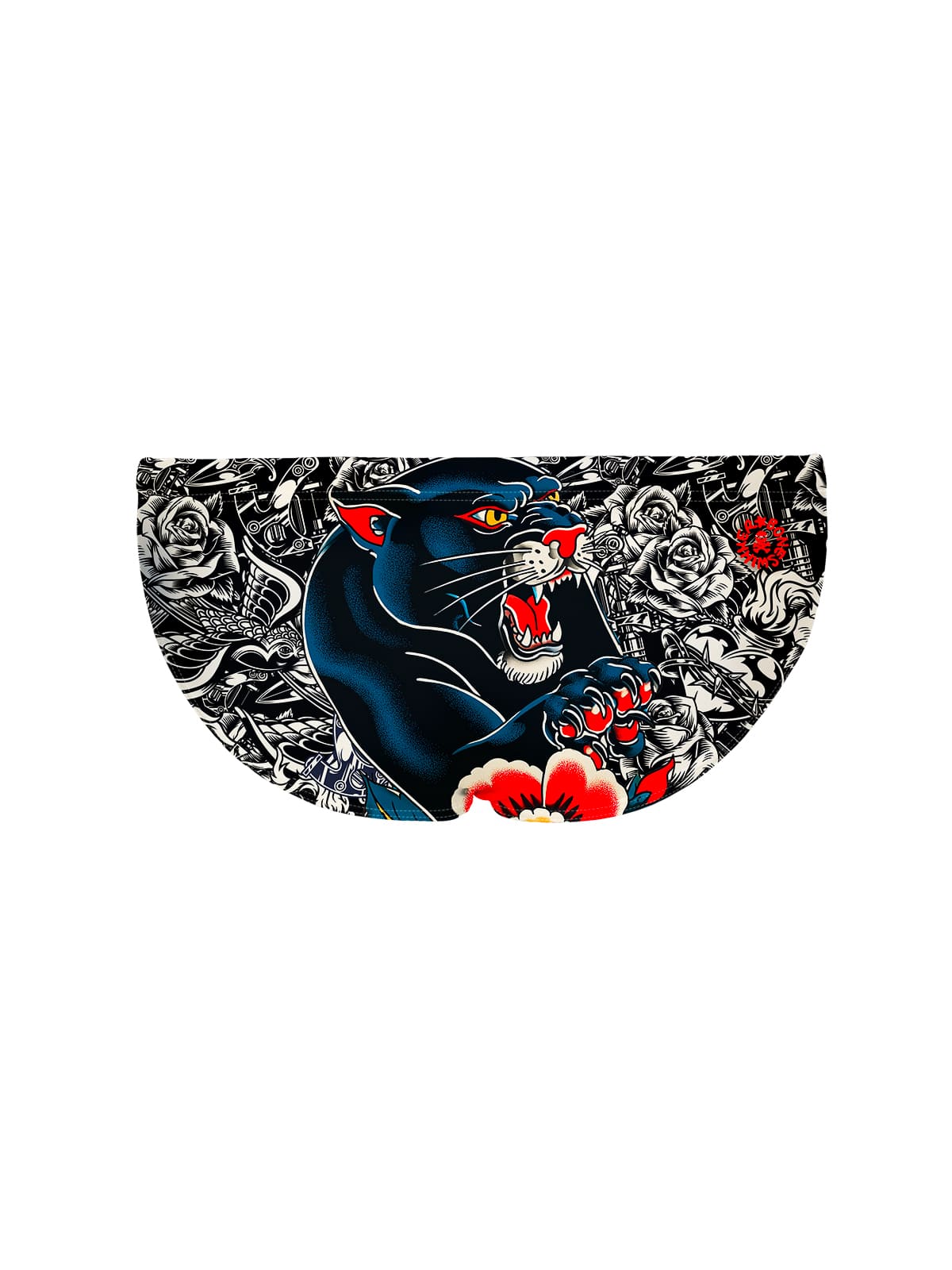Bañador slip de entrenamiento, modelo H2otto. Estampado “Tattoo”: pop art, contraste de colores tattoo, pantera con flor roja brillante.